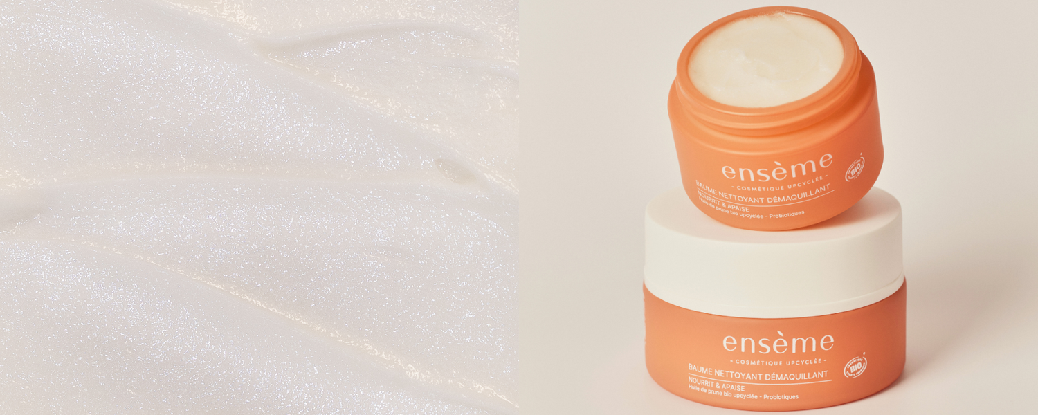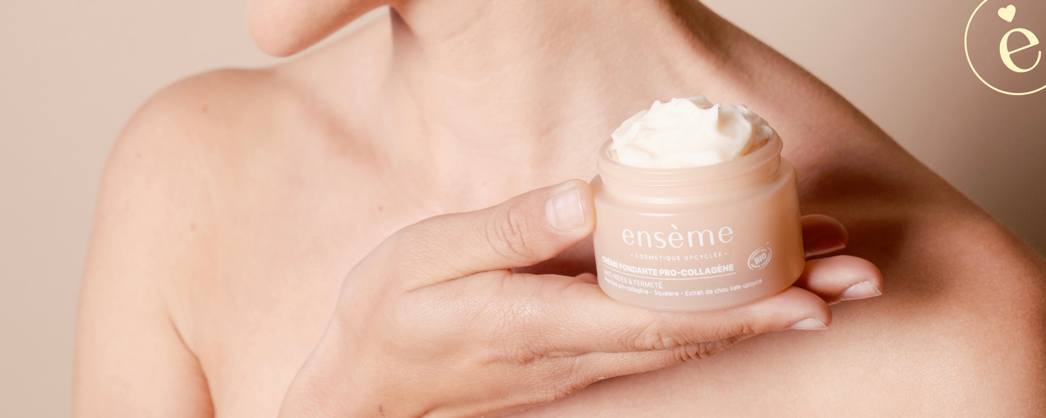 Ensème développe des soins mêlant sensorialité et durabilité, avec des formules 100% d'origine naturelle et certifiées bio, enrichies d'actifs upcyclés à l'efficacité prouvée.